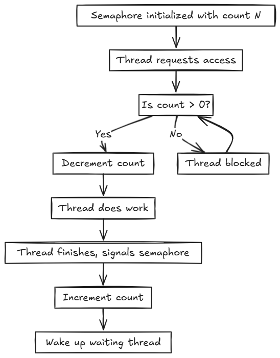 These primitives are implemente using OS-level constructs or hardware instructions. However, they introduce overhead and risks like priority inversion, where a low priority thread holding a lock delays a high-priority one.