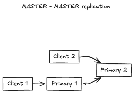 Here, multiple servers can handle both reads and writes, synchronizing changes between them. Systems like CouchDB or