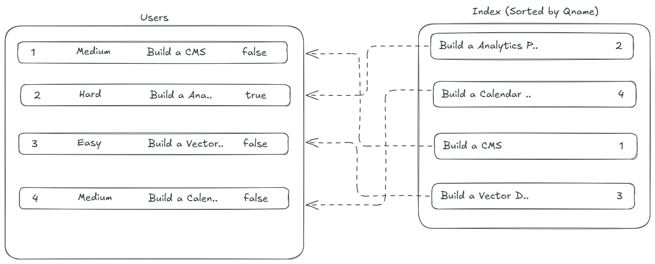 Whenever there is a query our algorithm is consistently looking up from the whole database content which is making our response slow, for this we introduce Database Indexing all the primary key, or username can be indexed at a place which will help speeding up our database lookups pointing the actual location of the data.